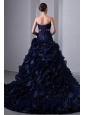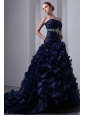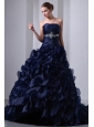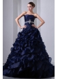 Home >  Quinceanera Dresses >  Pretty Quinceanera Dresses > Navy Blue A-Line / Princess Strapless Beading and Ruch Quinceanea Dress Brush Train Taffeta and Organza