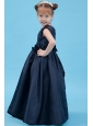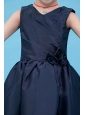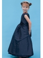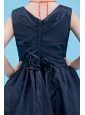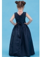 Navy Blue A-line V-neck Flower Girl Dress Taffeta Floor-length