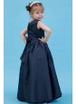 Home >  Flower Girl Dresses > Navy Blue A-line V-neck Flower Girl Dress Taffeta Floor-length