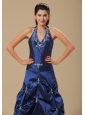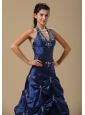 Home >  Prom Dresses >  Modest Prom Dresses > Navy Blue and Appliques Decorate Halter For Prom Dress In Topeka Topeka