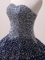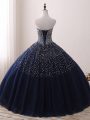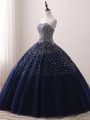 Navy Blue Ball Gowns Beading Quince Ball Gowns Lace Up Tulle Sleeveless Floor Length