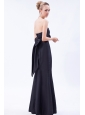 Simple understated dresses are becoming more and more fashionable. This elegant sheath is one example. It features a strapless bodice with a straight neckline. A wide ruched sash was sewn at the waist area with a beautiful bow drooping in the back. The straight skirt falls elegantly to the floor and a zip closure secures the back in place. What are you looking for? Take it home.