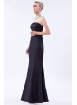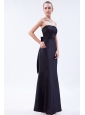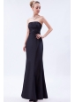 Navy Blue Column Strapless Floor-length Satin Ruch Bridesmaid Dress