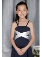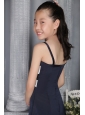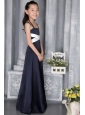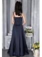 Navy Blue Column Straps Floor-length Satin Flower Girl  Dress