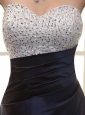 Elegant yet graceful. This beautiful dress features a sweetheart neckline with white fabric features the bust,which gives a contrusting look against the rest part. The sparkling beading on the bust add the stunning look. Your slim figure is emphasized with pleats. A column skirt with a brush train adds your elegance. Wearing the dress, the elegant and poised temperature is displayed entirely.