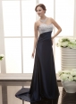 Home >  Special Occasion Dresses >  Military Ball Gowns > Navy Blue Column Sweetheart Neck Beaded Satin Stylish Prom Gowns