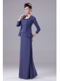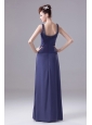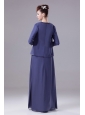 Navy Blue Empire Beaded Decorate Shoulder Mother Of The Bride Dress With Square