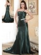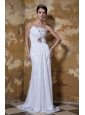 Simply gorgeous! This floor length prom dress featurs a one shoulder style, the fitted bodice is adorned with exquisite ruchings and embellished beadwork in the side and back, while the wide strap is also heavily decorated. The pleated skirt flows freely to the floor with no redundant and a zipper up in the side completes this unique design.