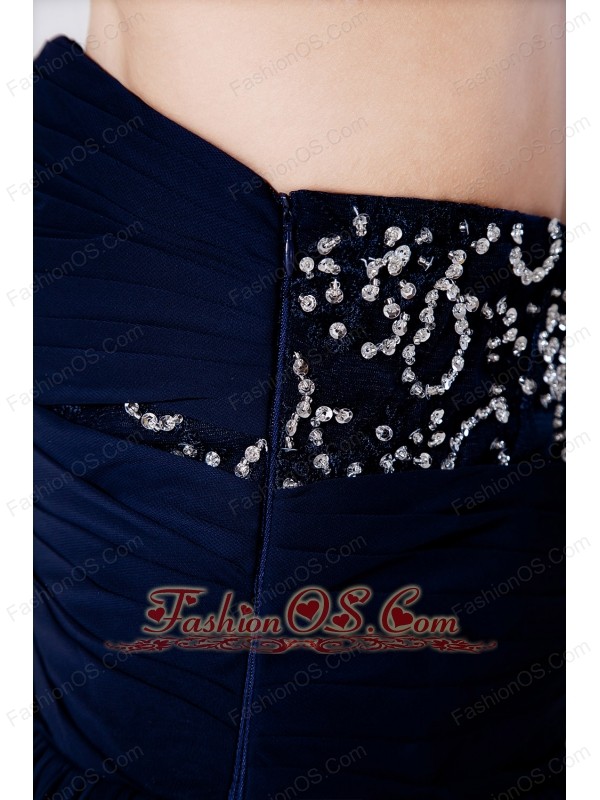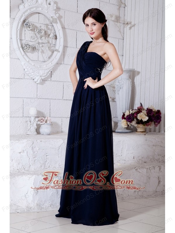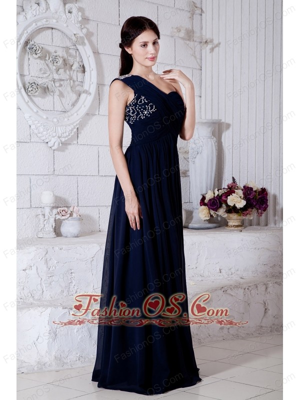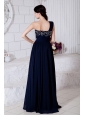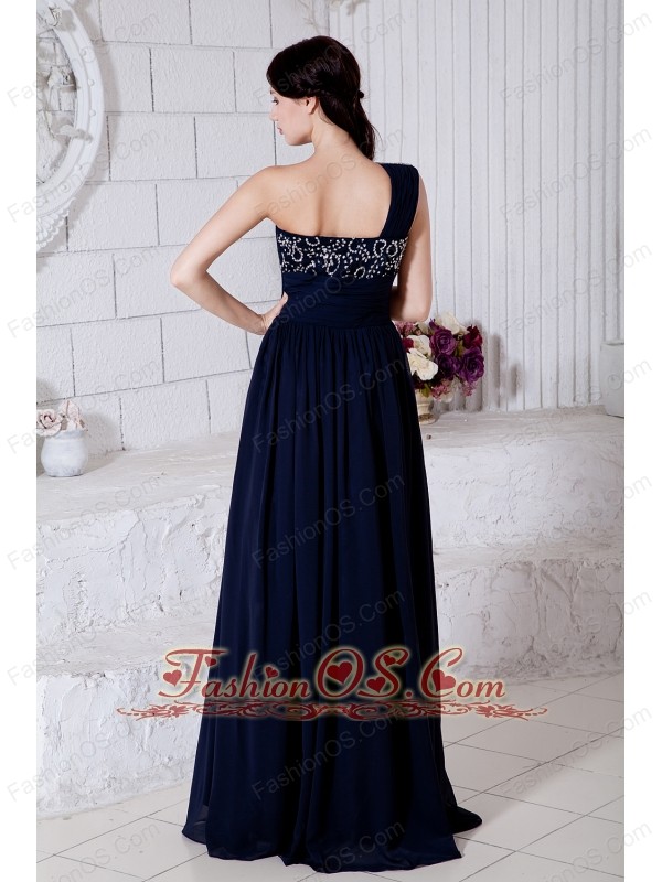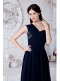 Home >  Prom Dresses >  Cheap Prom Dresses > Navy Blue Empire One Shoulder Beading Prom / Evening Dress Brush Train Chiffon