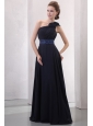 Home >  Prom Dresses >  Fashionable Prom Dresses > Navy Blue Empire One Shoulder Prom Dress with Beading and Flower