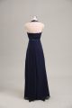 Navy Blue Empire Ruching Prom Evening Gown Lace Up Chiffon Sleeveless Floor Length