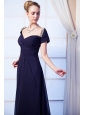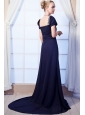 Navy Blue Empire Sweetheart Prom Dress Chiffon Beading Brush Train