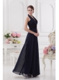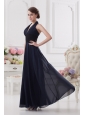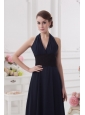 Navy Blue Halter top Long Prom Dress with Ruching and Lace