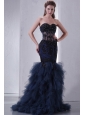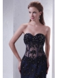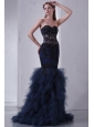 Navy Blue Mermaid Sweetheart Prom Dress with Appliques and Beading