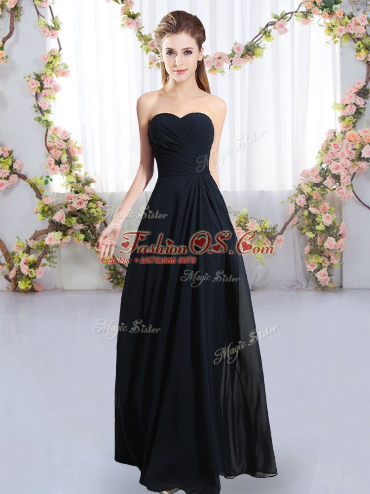 Navy Blue Sleeveless Floor Length Ruching Zipper Vestidos de Damas