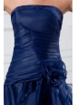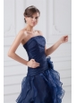 Navy Blue Strapless A-line Ruffles High-low Organza Prom Dress