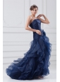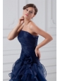 Home >  Prom Dresses >  High Low Prom Dresses > Navy Blue Strapless A-line Ruffles High-low Organza Prom Dress