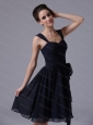 It truly is an example of high end couture fashion. This gown features a sweetheart neckline that is encrusted with ruched details on the front and the back. A coordinating waist sash adds interest and detail to the mid-section of the dress. The beautiful short skirt create a beautiful shape to complete the dress. If you're looking for a high-end dress without the high-end price tag, this is definitely one you should consider.