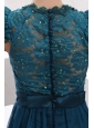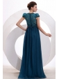 Home >  Prom Dresses >  Modest Prom Dresses > Navy Blue V-neck Cap Sleeves Beaded Decorate Brush Train Prom Dress