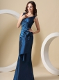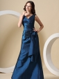Home >  Bridesmaid Dresses >  Elegant Bridesmaid Dresses > Navy Blue V-neck Ruched Bodice and Hand Made Flowers For Bridesmaid Dress