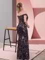 Navy Blue Zipper Off The Shoulder Ruching Homecoming Dress Sequined Sleeveless