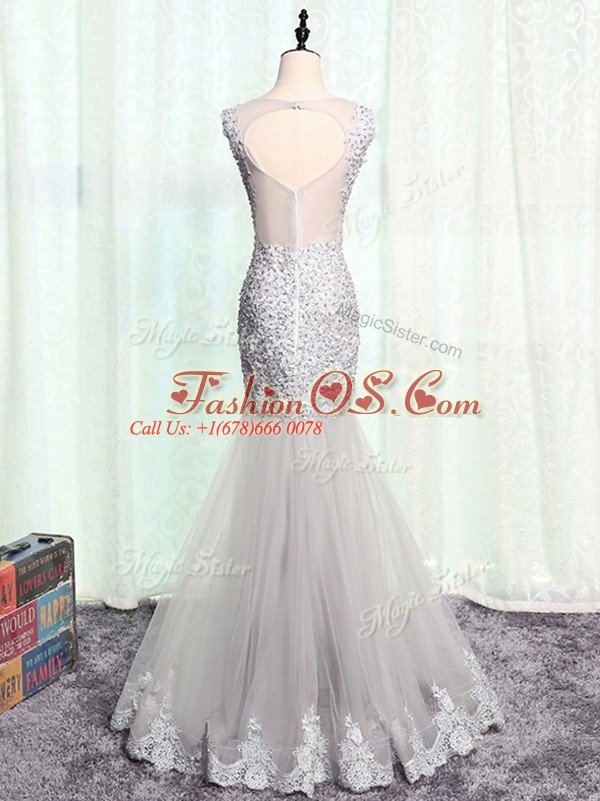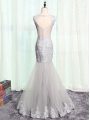 Navy Blue Zipper Scoop Beading and Lace and Appliques Mother Of The Bride Dress Tulle Sleeveless