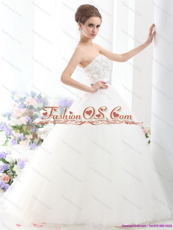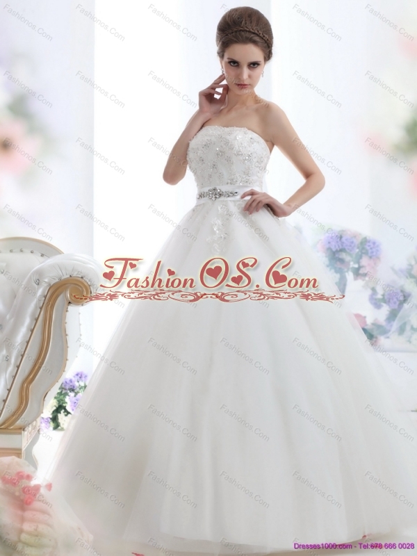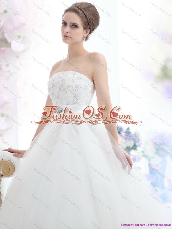 Home >  Wedding Dresses >  Fashionable Wedding Dresses > New 2015 Popular Strapless Beading Wedding Dress with Brush Train