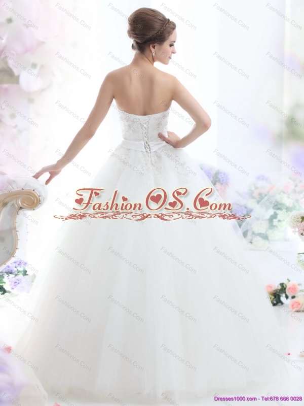 New 2015 Popular Strapless Beading Wedding Dress with Brush Train