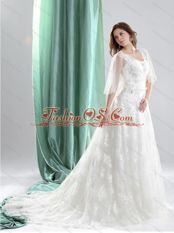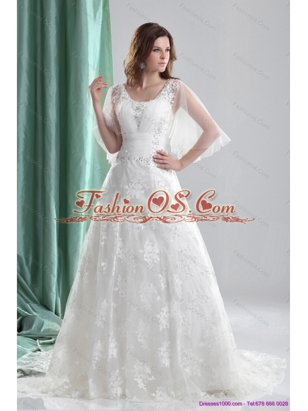 New 2015 Wonderful A Line Wedding Dress with Beading and Lace