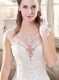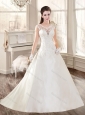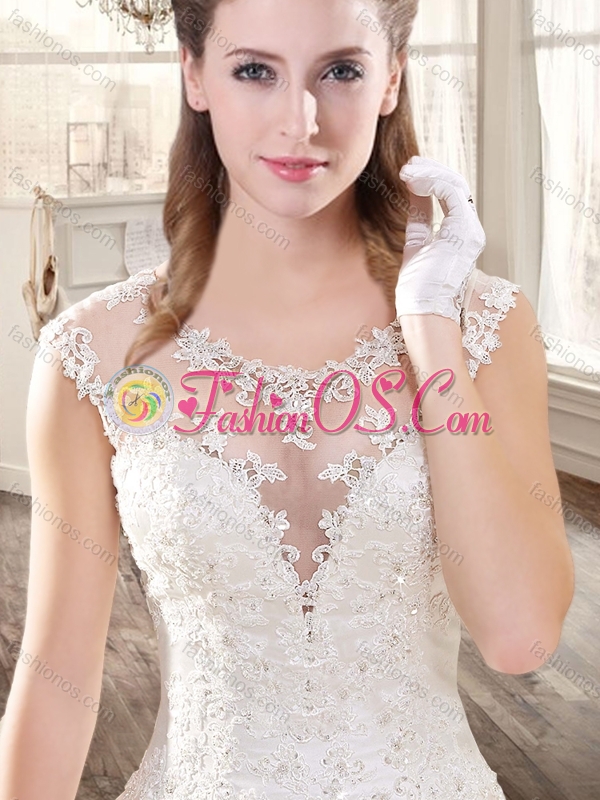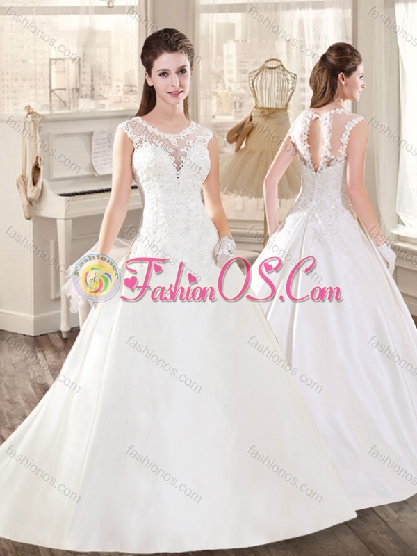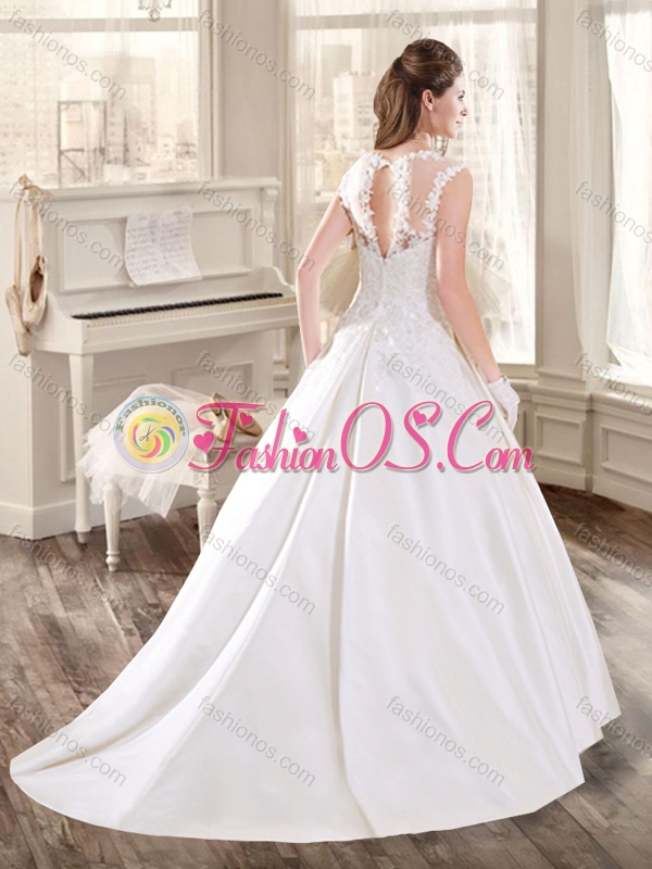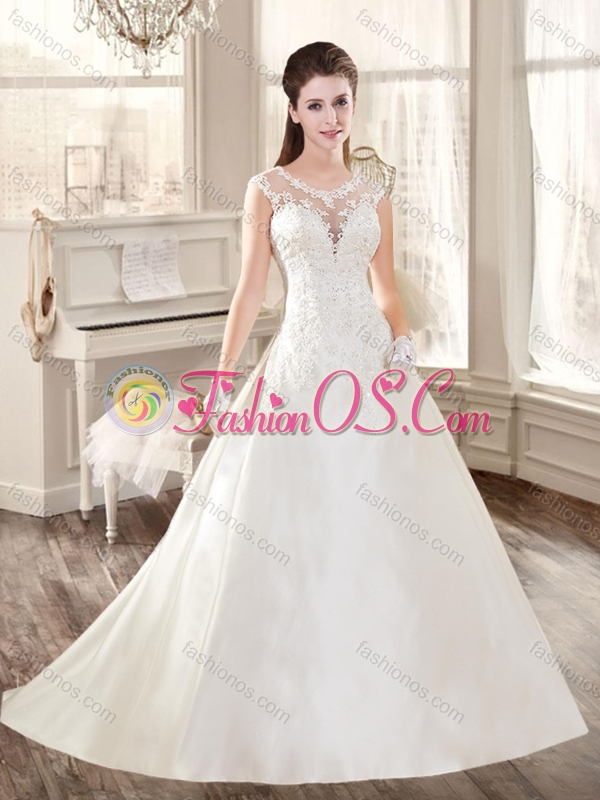 New A Line Scoop Appliques Wedding Dresses with Brush Train