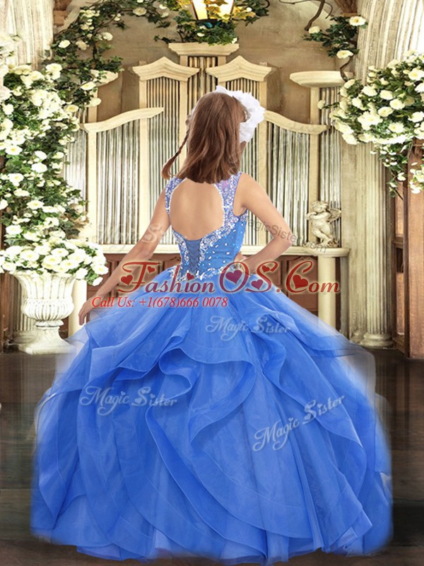 Home >  Special Occasion Dresses >  Beautiful Kids Pageant Dresses > New Arrival Aqua Blue Sleeveless Floor Length Beading and Ruffles Lace Up Custom Made Pageant Dress