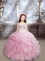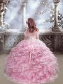 New Arrival Baby Pink Sleeveless Brush Train Beading and Ruffles Little Girl Pageant Dress