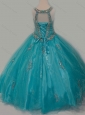 New Arrival Ball Gown Scoop Organza Long Lace Up Little Girl Pageant Dress with Beading