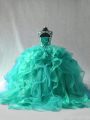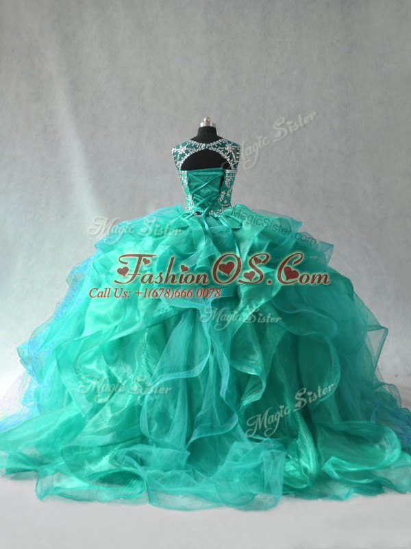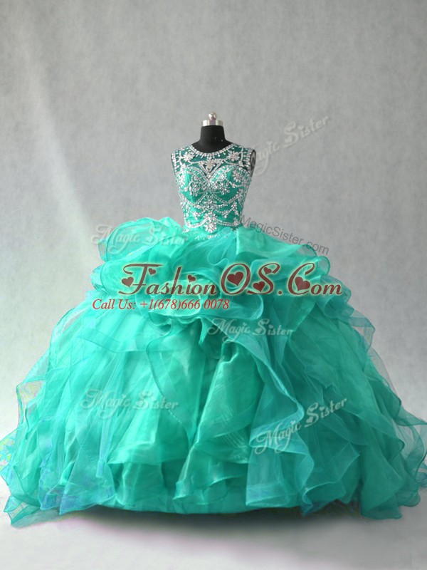 New Arrival Ball Gowns Quinceanera Gown Turquoise Scoop Organza Sleeveless Floor Length Lace Up