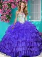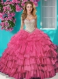 New Arrival Beaded and Ruffled Layers Quinceanera Dress with Brush Train