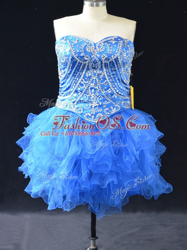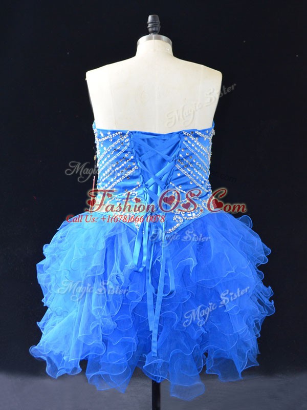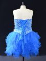New Arrival Blue Sweetheart Lace Up Beading and Ruffles Prom Dress Sleeveless