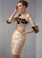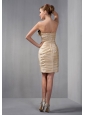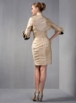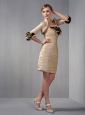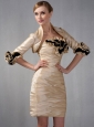 Home >  Prom Dresses >  Modest Prom Dresses > New Arrival Champagne Column Strapless Mini-length Taffeta Ruch and Hand Made Flowers Prom Dress