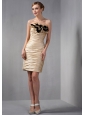 New Arrival Champagne Column Strapless Mini-length Taffeta Ruch and Hand Made Flowers Prom Dress