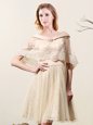 New Arrival Champagne Sleeveless Lace Mini Length Bridesmaid Dress