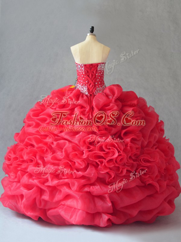 New Arrival Coral Red Sleeveless Beading and Pick Ups Floor Length Sweet 16 Dresses