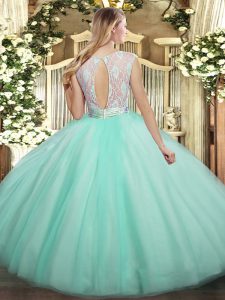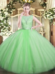 New Arrival Floor Length Backless 15th Birthday Dress Apple Green for Military Ball and Sweet 16 and Quinceanera with Lace