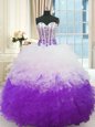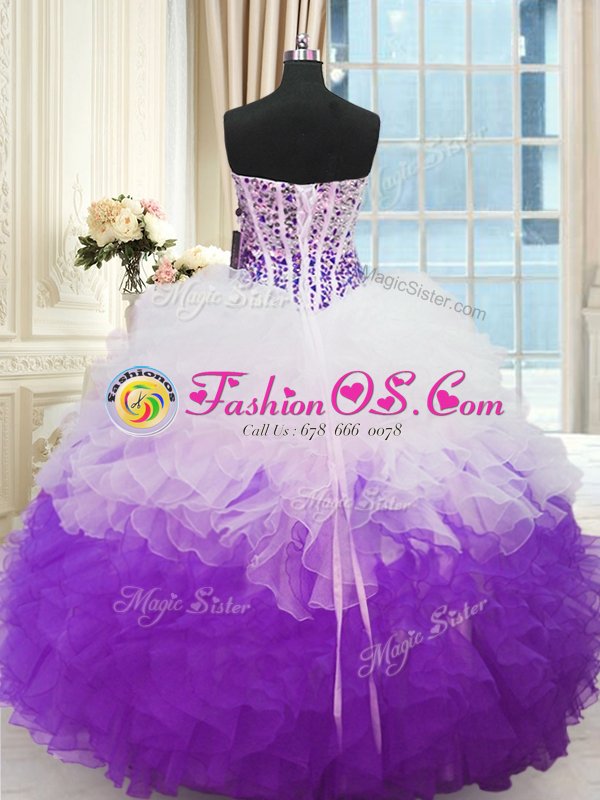 New Arrival Floor Length Lace Up Sweet 16 Dresses White And Purple and In for Military Ball and Sweet 16 and Quinceanera with Beading and Ruffles