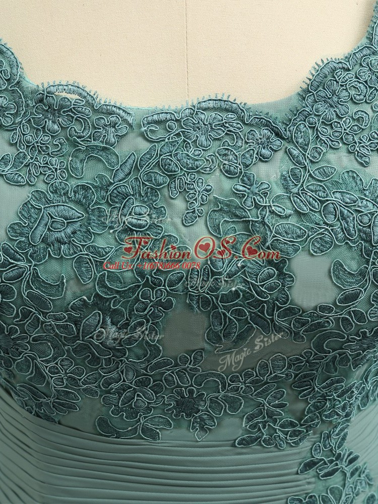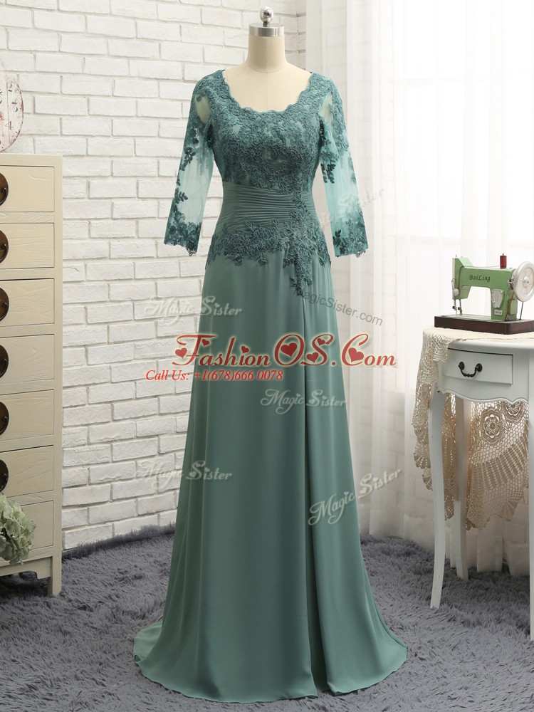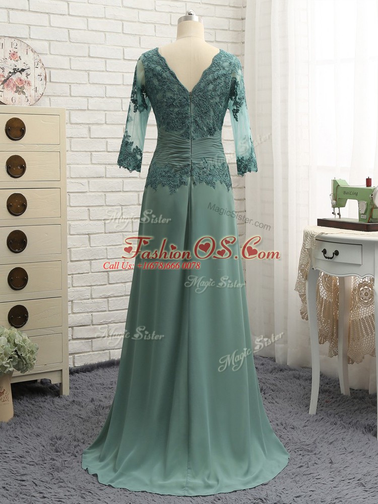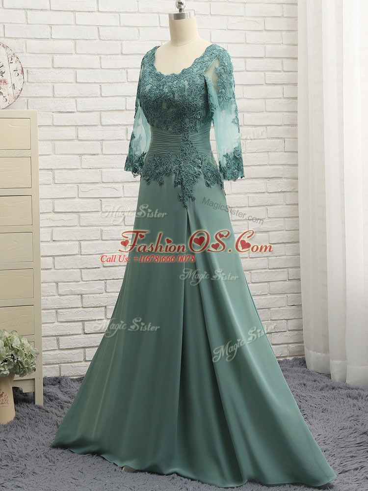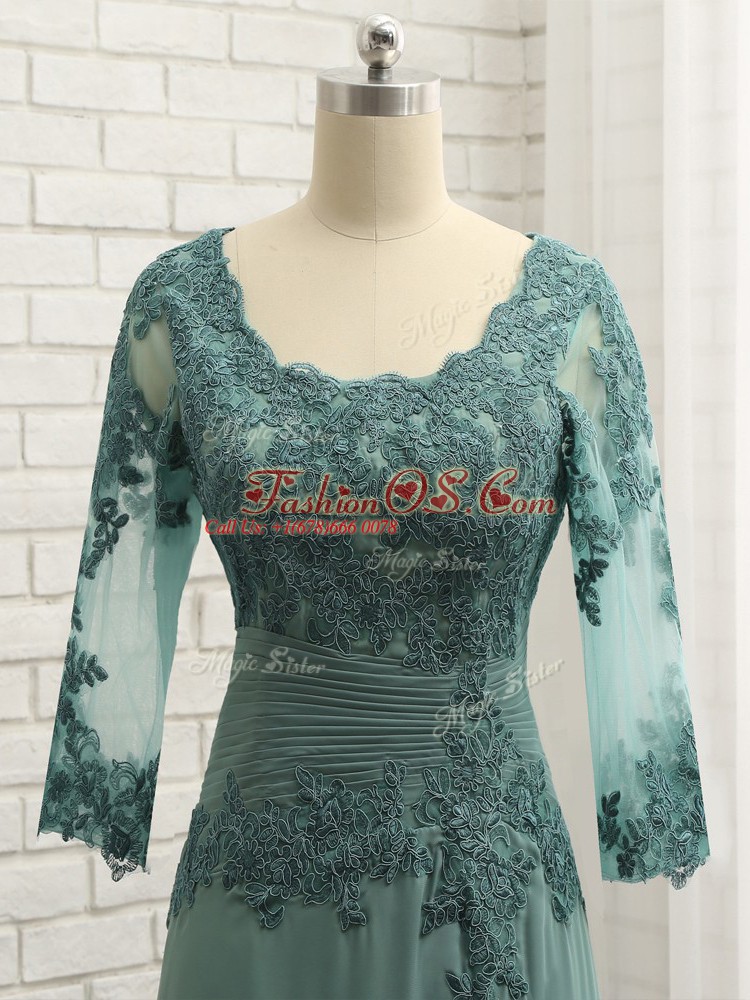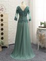 New Arrival Floor Length Zipper Mother Of The Bride Dress Green for Prom and Sweet 16 with Beading and Lace and Appliques