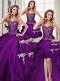 New Arrival Four Piece Pick Ups Floor Length Ball Gowns Sleeveless Purple Quinceanera Gown Lace Up