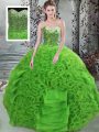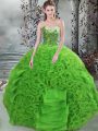 New Arrival Green Ball Gowns Organza Sweetheart Sleeveless Beading and Ruffles Floor Length Lace Up Sweet 16 Dresses