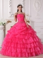 New Arrival Hot Pink Quinceanera Dress Strapless Organza Appliques Ball Gown