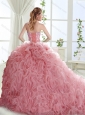 New Arrival Lovely Brush Train Mint  Quinceanera Dresses with Beading