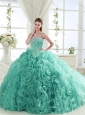 New Arrival Lovely Brush Train Mint Quinceanera Dresses with Beading