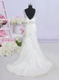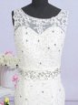 New Arrival Mermaid Scoop Backless White Sleeveless Brush Train Beading and Lace and Appliques and Bowknot Wedding Gown