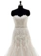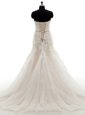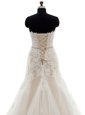 New Arrival Mermaid Tulle Sleeveless With Train Wedding Dress Brush Train and Appliques